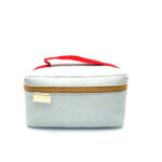 Deze toilettas is gemaakt van soepel leder en heeft een strak, rechthoekig ontwerp dat stevig rechtop blijft staan. Ze sluit met een rits rondom en is voorzien van een handig handvat bovenaan, waardoor ze gemakkelijk mee te nemen is. De binnenruimte biedt voldoende plaats voor verzorgingsproducten en reisbenodigdheden. Een praktische en stijlvolle tas die functionaliteit combineert met een eigentijdse uitstraling.